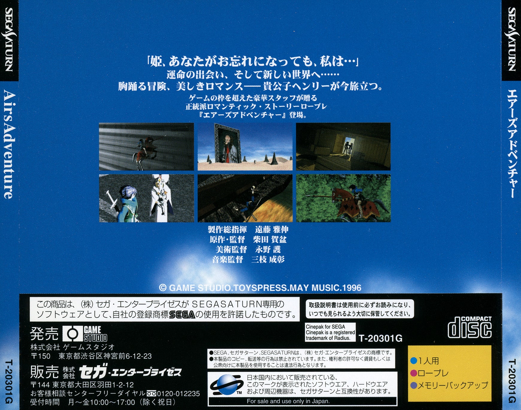 Embark on a quirky fantasy journey in Airs Adventure on the JP Sega Saturn. This traditional role-playing game is known for its distinct visual style, combining pre-rendered backgrounds with digitized character sprites. Players guide a hero through a medieval world, battling enemies in a first-person perspective combat system. The game features a classic story of adventure and magic, with various towns to explore and dungeons to conquer. While it garnered a cult reputation for its unique aesthetic choices and execution, it remains an interesting piece of the Saturn's vast RPG library for collectors of obscure Japanese titles.