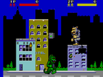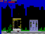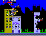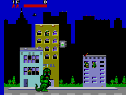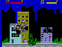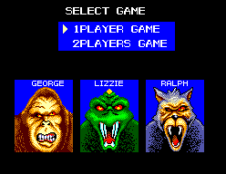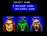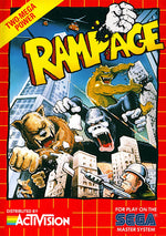 Unleash your inner beast and level the city in Rampage for the Sega Master System. This faithful port of the arcade classic invites you to take control of three giant monsters—George the ape, Lizzie the lizard, or Ralph the wolf. Your objective is simple: destroy everything in your path. You will scale skyscrapers, punch holes in buildings, eat fleeing civilians, and swat at pesky helicopters and tanks trying to bring you down. The game supports two-player co-op, allowing you and a friend to compete for the highest score while reducing the metropolis to rubble. With its chaotic gameplay and humorous tone, this beat 'em up offers satisfying destruction. Smash, bash, and crash your way through the United States in a frenzy of monster mayhem.