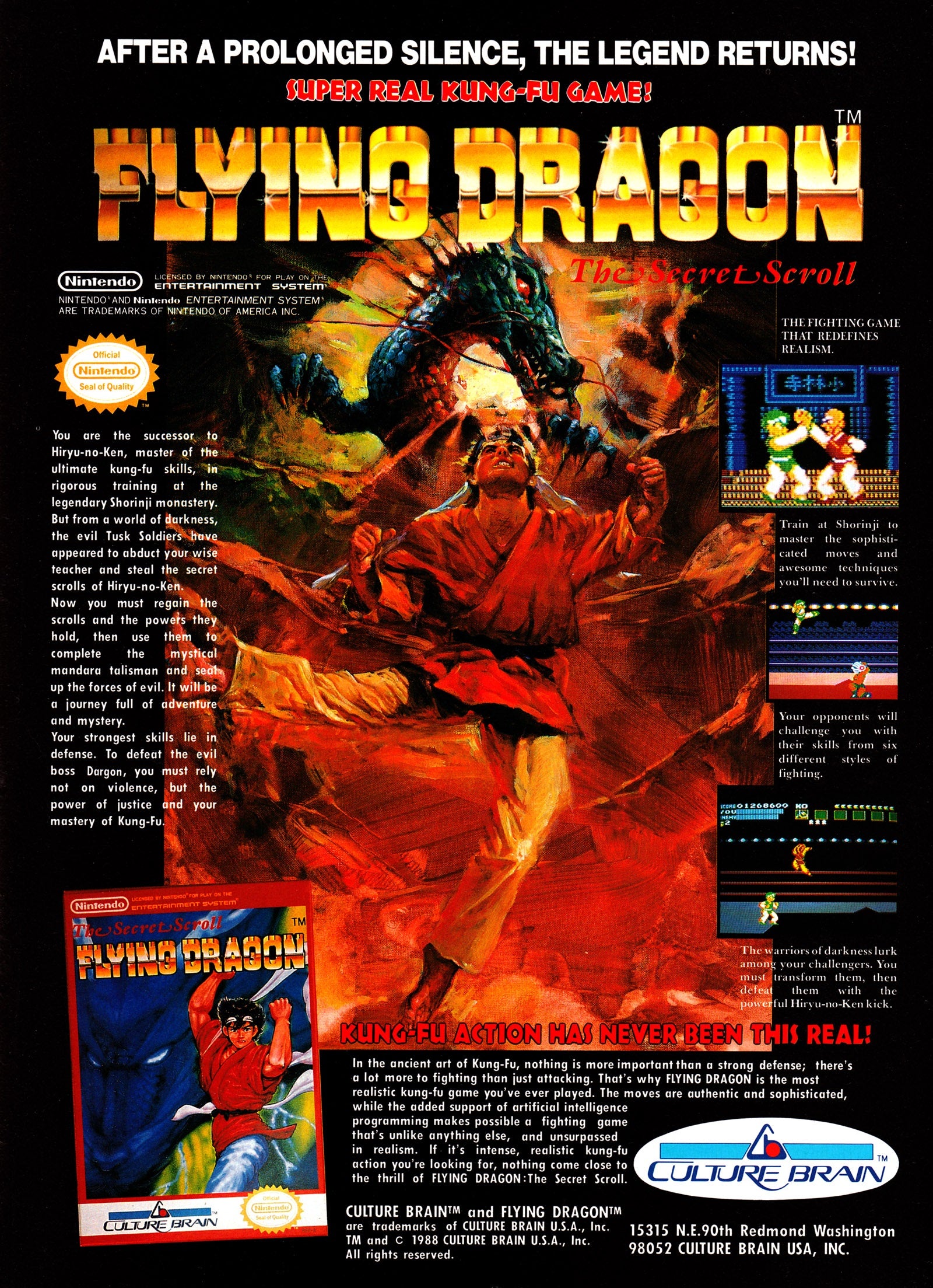 Master the art of combat and unlock ancient secrets in a dual-mode martial arts epic. Flying Dragon: The Secret Scroll for the NES offers two distinct gameplay experiences in one cartridge. Embark on a side-scrolling action RPG journey, where you'll explore the land, fight mystical foes, and level up your character's abilities. Then, test your skills in the competitive tournament mode, a one-on-one fighting game that pits you against other martial arts masters. With its unique blend of genres, this classic title delivers a deep and engaging combat adventure. Prove you are the ultimate dragon warrior.