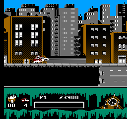 The boys in beige are back to clean up the town and stop a river of slime from consuming New York City! In Ghostbusters II for the NES, you'll take control of the legendary paranormal investigators in an action-packed game based on the hit movie. The gameplay alternates between driving the Ecto-1 in a top-down perspective and battling ghostly forces in challenging isometric action sequences. Strap on your proton pack, deploy your ghost traps, and face off against Vigo the Carpathian. This retro movie tie-in offers a true test of your ghost-busting skills. Who you gonna call?