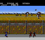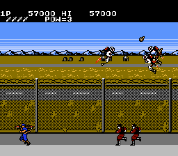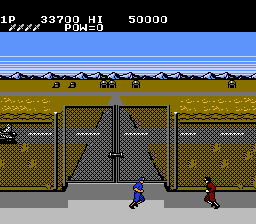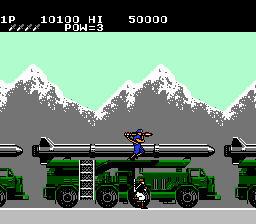 Infiltrate the enemy base armed with little more than a knife in Rush'n Attack for the NES. In this intense side-scrolling action game, you are a lone special forces operative sent on a daring mission to rescue prisoners of war. Survive by mastering precise attacks and avoiding enemy fire as you push deeper into hostile territory. Collect limited-use special weapons like flamethrowers and rocket launchers from defeated foes to even the odds. This challenging arcade port demands stealth, skill, and courage to complete its high-stakes espionage objective. Your mission, should you choose to accept it, begins now.