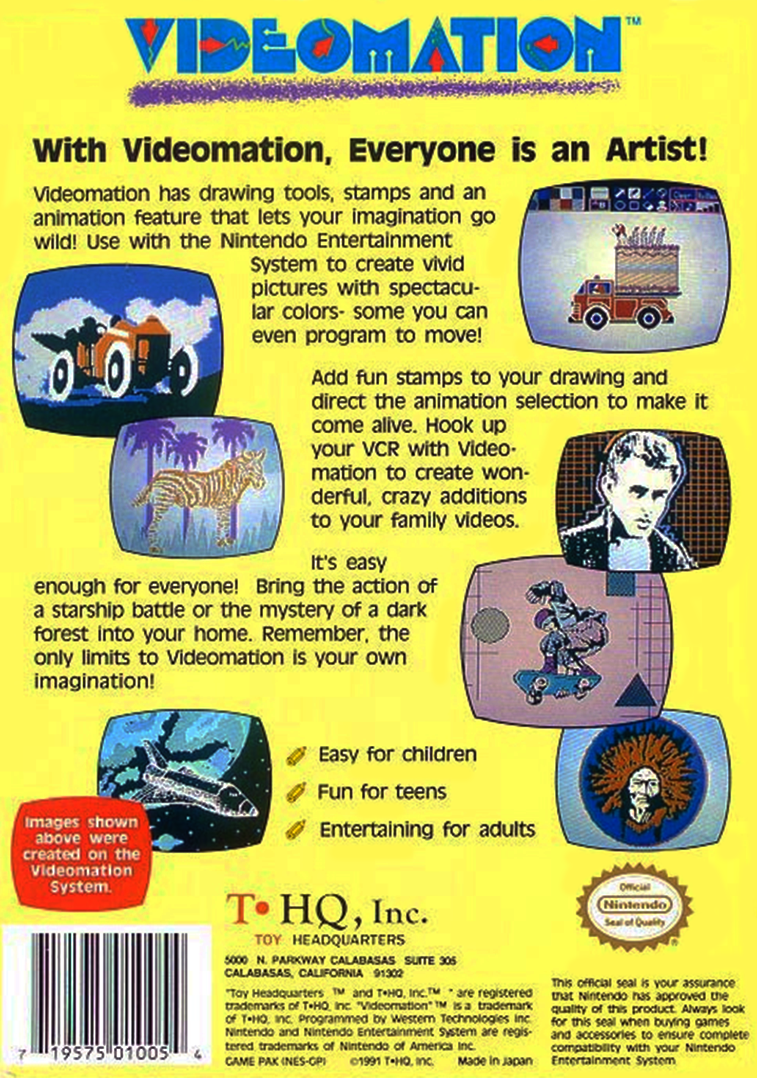 Unleash your 8-bit creativity with Videomation for the NES, a unique cartridge that transforms your console into a simple animation studio. This is not a game, but a powerful and accessible tool that allows you to draw, color, and create your own cartoons right on your television screen. Design characters and backgrounds pixel by pixel, then string your creations together to make short animated clips. With the ability to record your masterpieces to a VCR, Videomation was a groundbreaking piece of software that let anyone with an NES become a classic 8-bit artist.