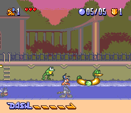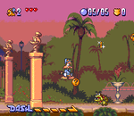 Get ready for cartoon chaos and madcap action with Bonkers for the Super Nintendo. Step into the shoes of the titular bobcat police officer, Bonkers D. Bobcat, as you embark on a quest to recover stolen treasures from Toontown. This vibrant 16-bit action-platformer sends you through a series of distinct stages, each with its own unique gameplay challenge, from chasing down criminals to navigating treacherous environments. You'll need to collect bombs to stun your wacky adversaries and retrieve the pilfered goods. Fans of colorful, accessible platformers will find a delightful and amusing adventure in this classic licensed SNES title.