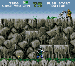 Lock, load, and leap into explosive side-scrolling action with Gunforce for the Super Nintendo. This classic run-and-gun shooter drops you straight into a warzone, where you must blast your way through waves of enemy soldiers, vehicles, and powerful bosses. Drawing inspiration from arcade legends, the gameplay is pure, non-stop action. Commandeer enemy vehicles, upgrade your firepower with a variety of weapon pickups, and fight to survive against overwhelming odds. If you crave intense, old-school arcade thrills and challenging 16-bit combat, your mission starts here.