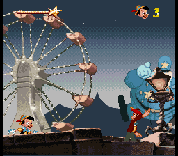 A classic fairy tale comes to life in Pinocchio for the Super Nintendo. Based on the timeless Disney animated film, this beautifully crafted 2D platformer lets you guide Pinocchio on his journey to become a real boy. Travel through iconic locations from the movie, including Stromboli's theater and the depths of the ocean inside Monstro the whale. With gorgeous graphics that perfectly capture the look of the film and varied gameplay that keeps the adventure fresh, Pinocchio is a charming and magical 16-bit experience for Disney fans of all ages.