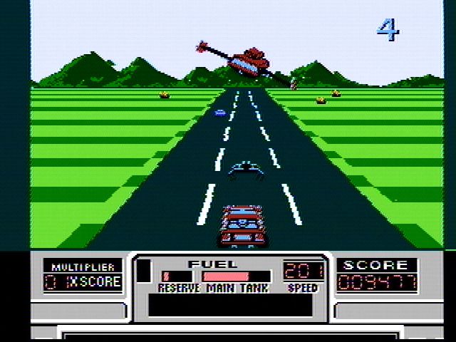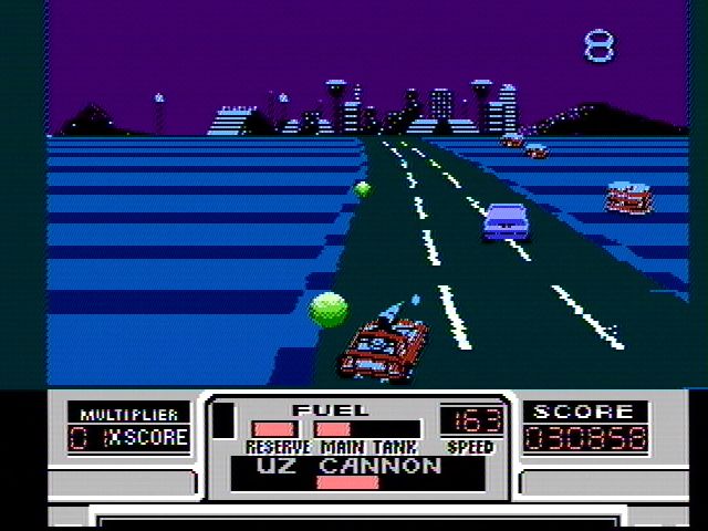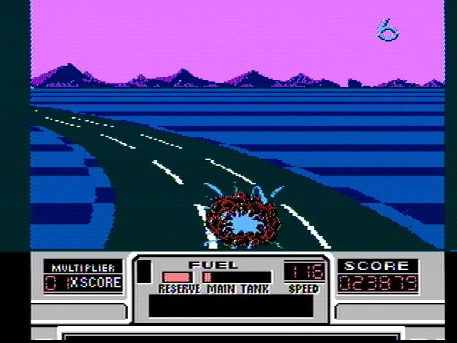 Combine high-speed racing with heavy firepower in RoadBlasters for the NES. This vehicular combat game tasks you with driving a futuristic sports car through a series of dangerous courses while battling enemy vehicles and avoiding obstacles. Equip your car with machine guns and special weapons to blast opponents off the road, all while managing your fuel supply which depletes constantly. Catch fuel globes dropped by support planes to stay in the race and reach the finish line. With its fast scrolling visuals and intense arcade action, RoadBlasters tests both your driving reflexes and your trigger finger in a race for survival.