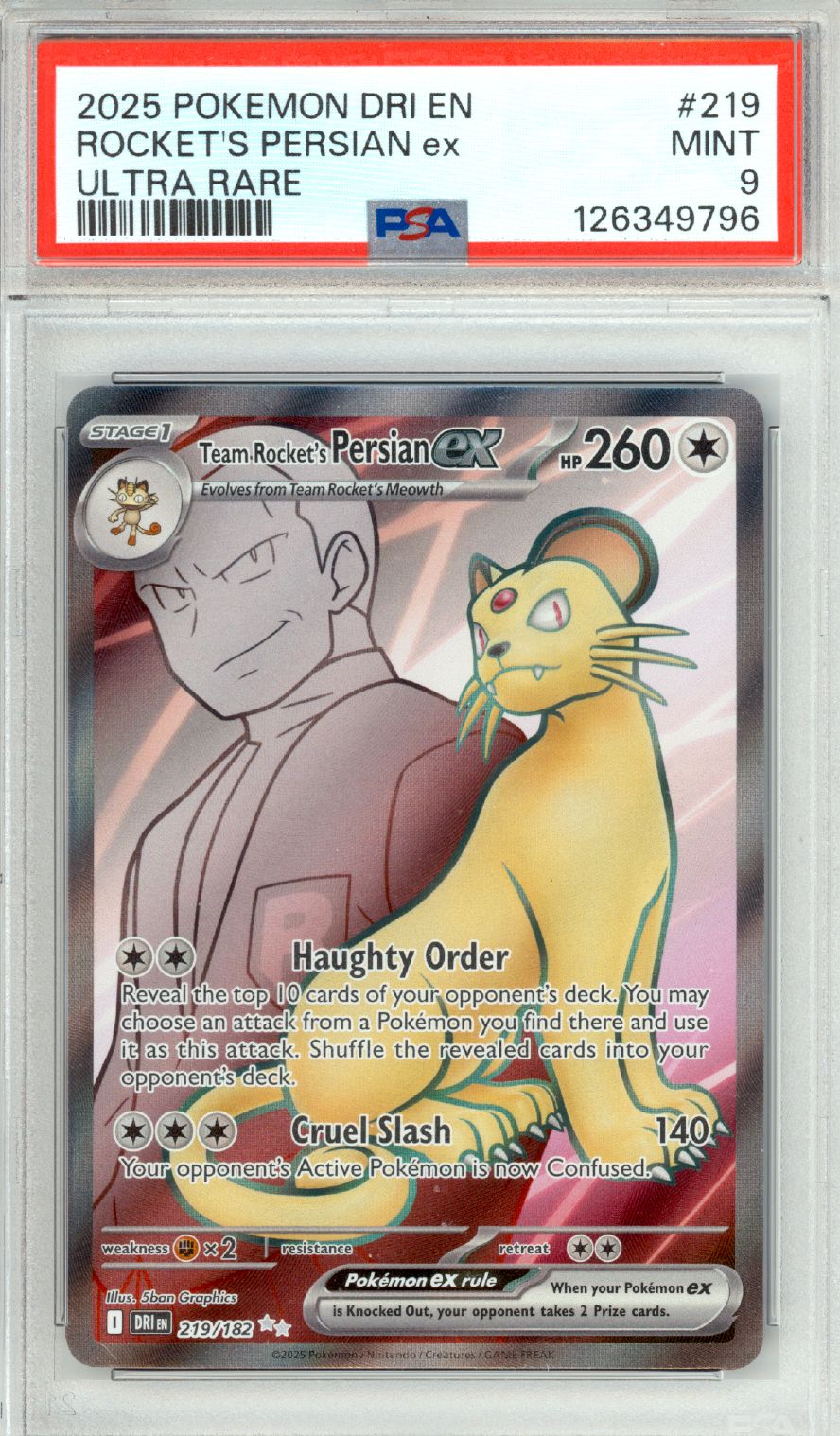 The 'Team Rocket's Persian ex #219 - Pokemon Destined Rivals' Card pictured may not be the exact card you will receive. Please pay attention to which grade you order. All graded card sales are final.