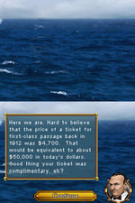 Board the most famous ship in history and solve a mystery that spans a century. Titanic Mystery for the Nintendo DS is a hidden object adventure game that tasks you with finding a bomb hidden aboard the Titanic II. As a passenger on the ship's maiden voyage, you must explore 30 intricate levels, searching for clues and hidden items to uncover a conspiracy. Engage in challenging mini-games and decode secrets to progress the story. Can you discover the truth and save the ship from suffering the same fate as its predecessor?