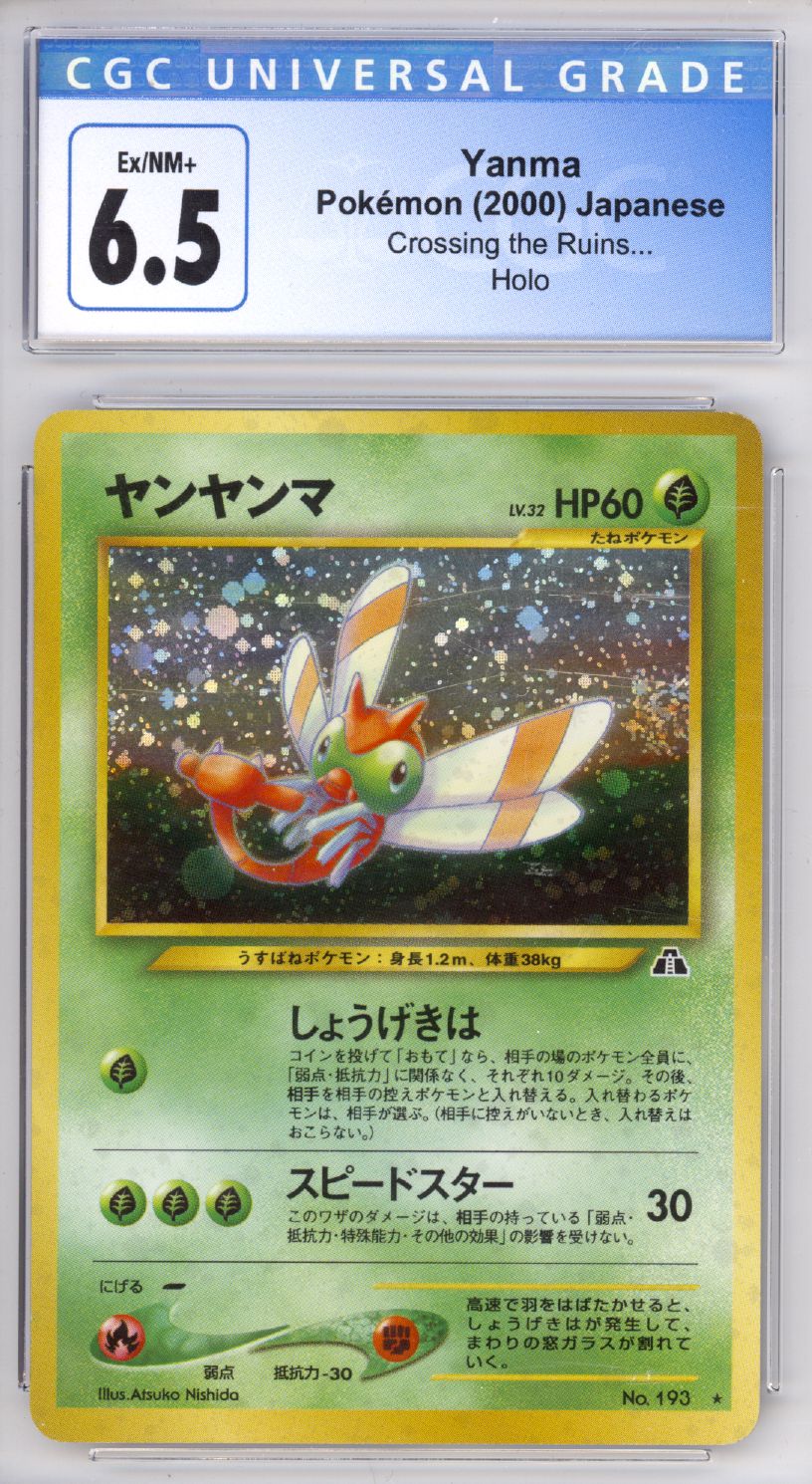 The 'Yanma #193 - Pokemon Japanese Crossing the Ruins' Card pictured may not be the exact card you will receive. Please pay attention to which grade you order. All graded card sales are final.