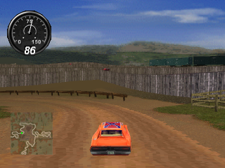 Help the Dukes save the Hazzard County Orphanage in Dukes of Hazzard II Daisy Dukes It Out for the Playstation. Get behind the wheel of the legendary General Lee and get ready for some good ol' fashioned mayhem in this mission-based driving game. Play as Bo, Luke, and even Daisy Duke in her classic Jeep as you take on a series of wild and chaotic objectives. Outrun Boss Hogg and Sheriff Rosco P. Coltrane, perform incredible stunts, and tear through the backroads of Hazzard County. This arcade-style action-driving title delivers all the charm and excitement of the classic TV show.