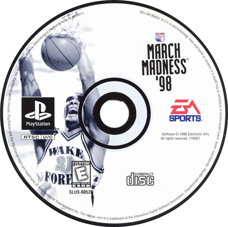 Experience early collegiate basketball action with NCAA March Madness 98 for the PlayStation. This basketball simulation features a selection of NCAA Division I teams and the exciting atmosphere of college hoops. Recruit players, run plays, and guide your favorite college program through a challenging season and the championship tournament in this classic retro sports title.