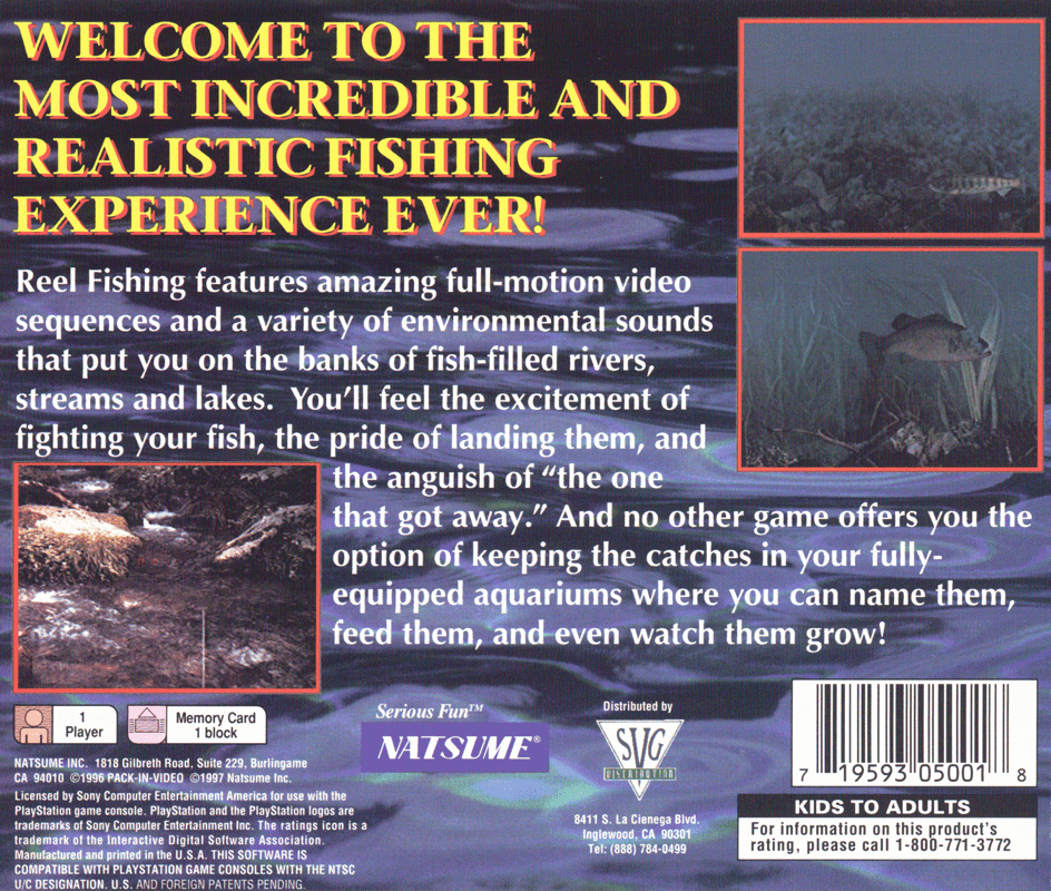 Experience the tranquility and challenge of angling with Reel Fishing for the Playstation. This pioneering fishing simulation offers a relaxing and immersive experience, allowing you to cast your line in various serene freshwater locations. Select from different lures and equipment, master casting techniques, and patiently wait for a bite. Battle a variety of fish species, each with unique behaviors, as you strive to reel in trophy catches. With its realistic (for its time) fish AI and peaceful atmosphere, Reel Fishing provided a calming and engaging escape for virtual fishermen.