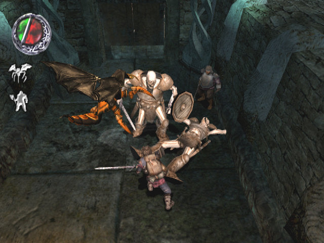 Embark on a hilariously irreverent adventure in The Bard's Tale for the Playstation 2. Forget being a noble hero; you are the Bard, a sarcastic and opportunistic rogue whose main motivations are coin and cleavage. This top-down action RPG subverts classic fantasy tropes with witty dialogue and clever humor. Summon a host of magical creatures to fight your battles, from a fire-breathing beetle to a nimble swordswoman, as you explore a vast world full of danger and discovery. Wield your lute as a weapon and your wit as a shield in a quest that prioritizes laughter over legends. Your unorthodox journey awaits.