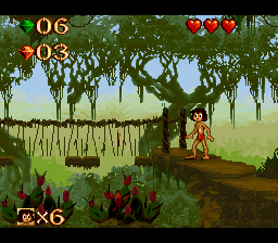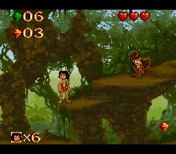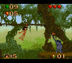 Journey through the vibrant and perilous Indian jungle in The Jungle Book for the Super Nintendo. Based on the classic Disney animated film, this action-platformer allows you to play as Mowgli, the man-cub. Navigate through lush, detailed levels, utilizing Mowgli's agility to jump, swing on vines, and climb trees. Collect fruit, wield various jungle weapons, and confront memorable characters like Kaa, King Louie, and the fearsome Shere Khan. With its beautiful 16-bit graphics, catchy music, and challenging gameplay, The Jungle Book offers a beloved and immersive retro adventure.