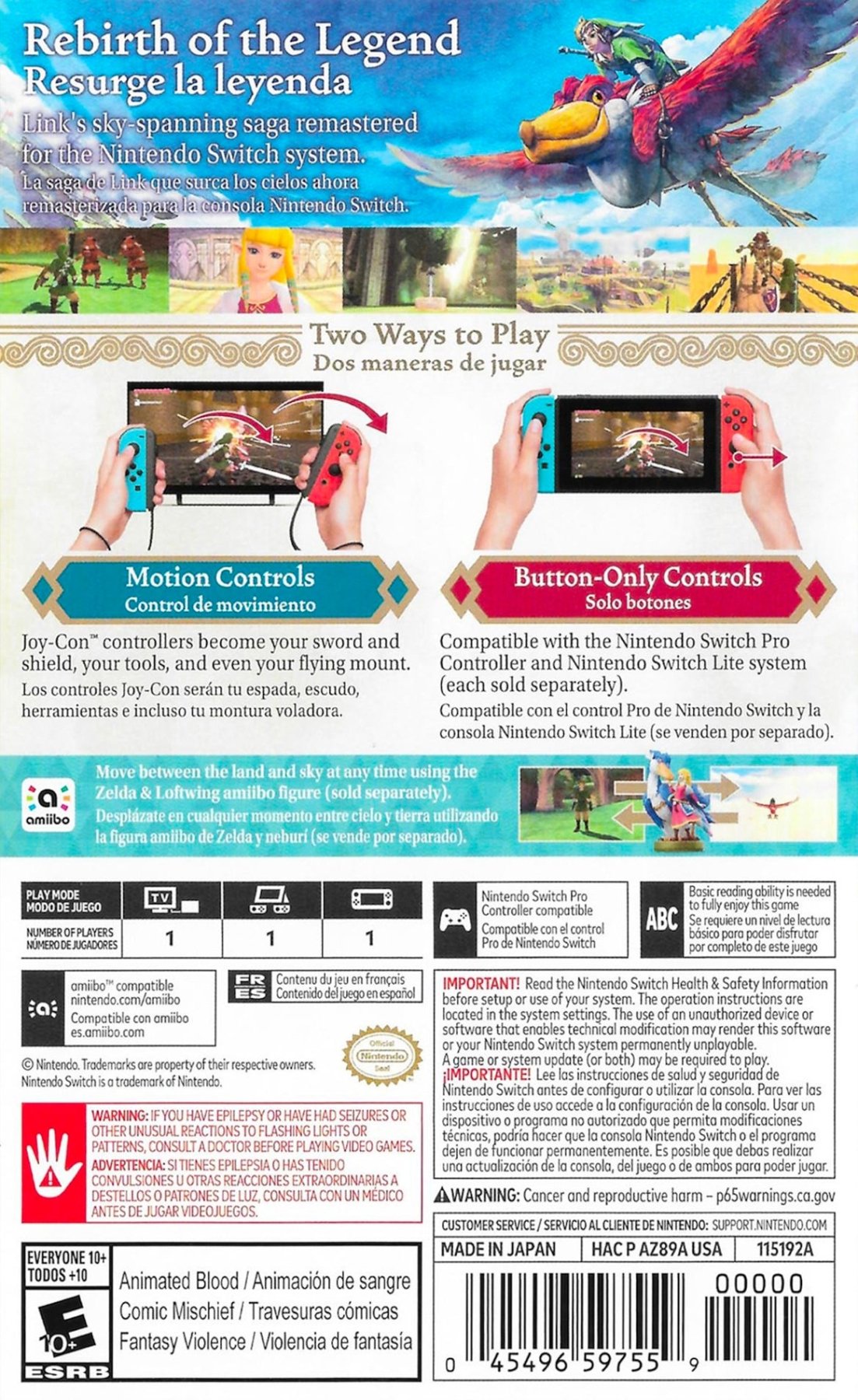 Relive a sky-high epic, now beautifully adapted for the Nintendo Switch, with The Legend of Zelda: Skyward Sword HD. Journey between the floating islands of Skyloft and the vast surface world below as Link, tasked with rescuing Zelda and fulfilling an ancient prophecy. This HD remaster features smoother motion controls, new button-only control options, improved performance, and the same captivating story that details the origin of the Master Sword.