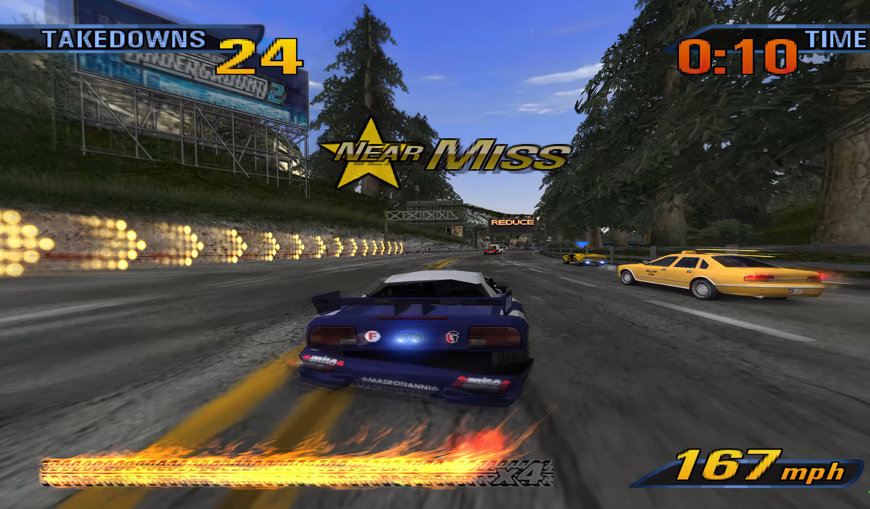 Enciende las calles con 'Burnout 3 Takedown' en Playstation 2. Participa en carreras agresivas, derrota a tus rivales y experimenta la emoción de las colisiones a alta velocidad. Es un viaje caótico y estimulante a través del mundo de la conducción competitiva.