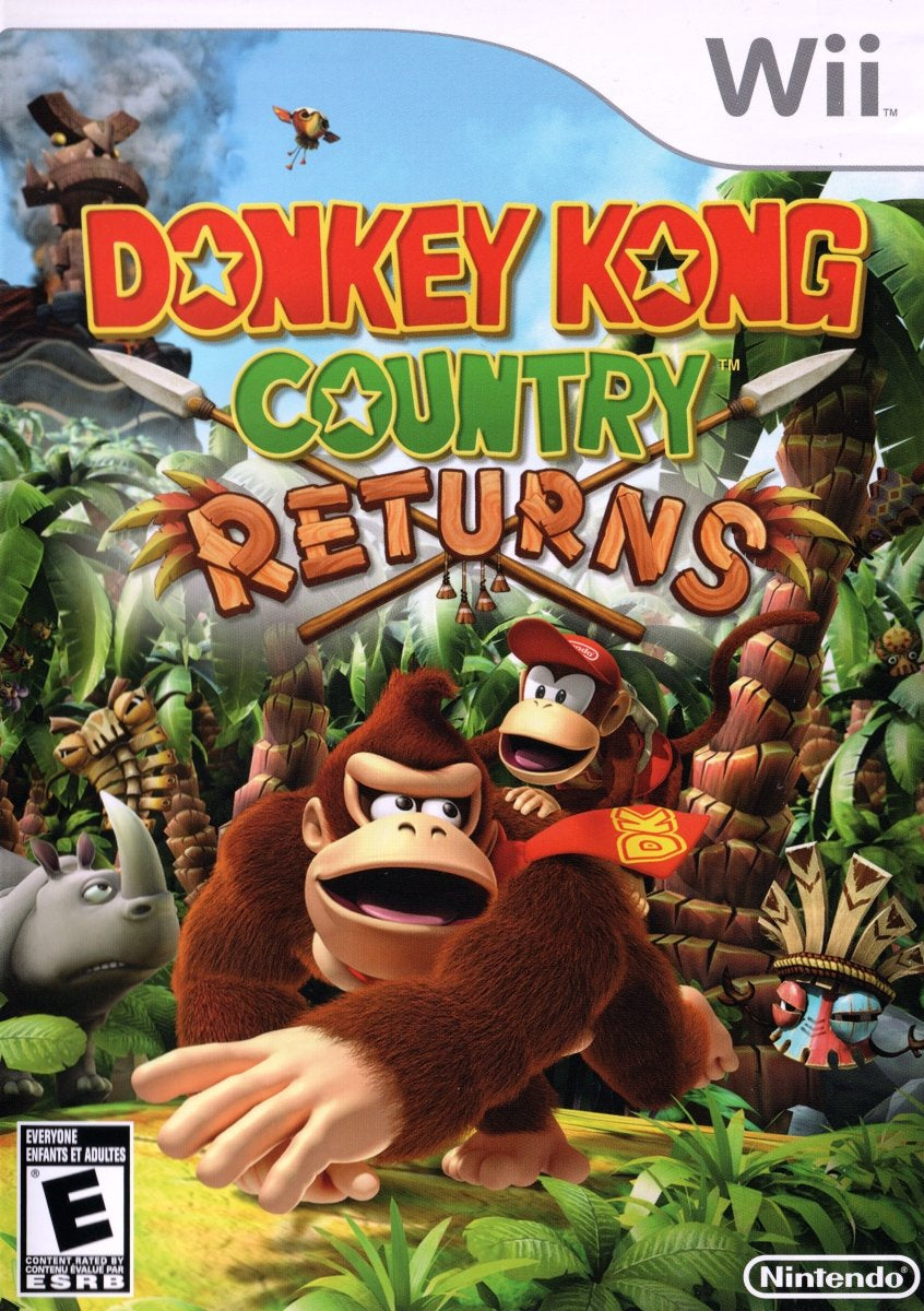 Vuelve a la acción con 'Donkey Kong Country Returns' en Wii. Únete a Donkey Kong y Diddy Kong en una aventura de desplazamiento lateral, navegando a través de niveles desafiantes llenos de enemigos y obstáculos.