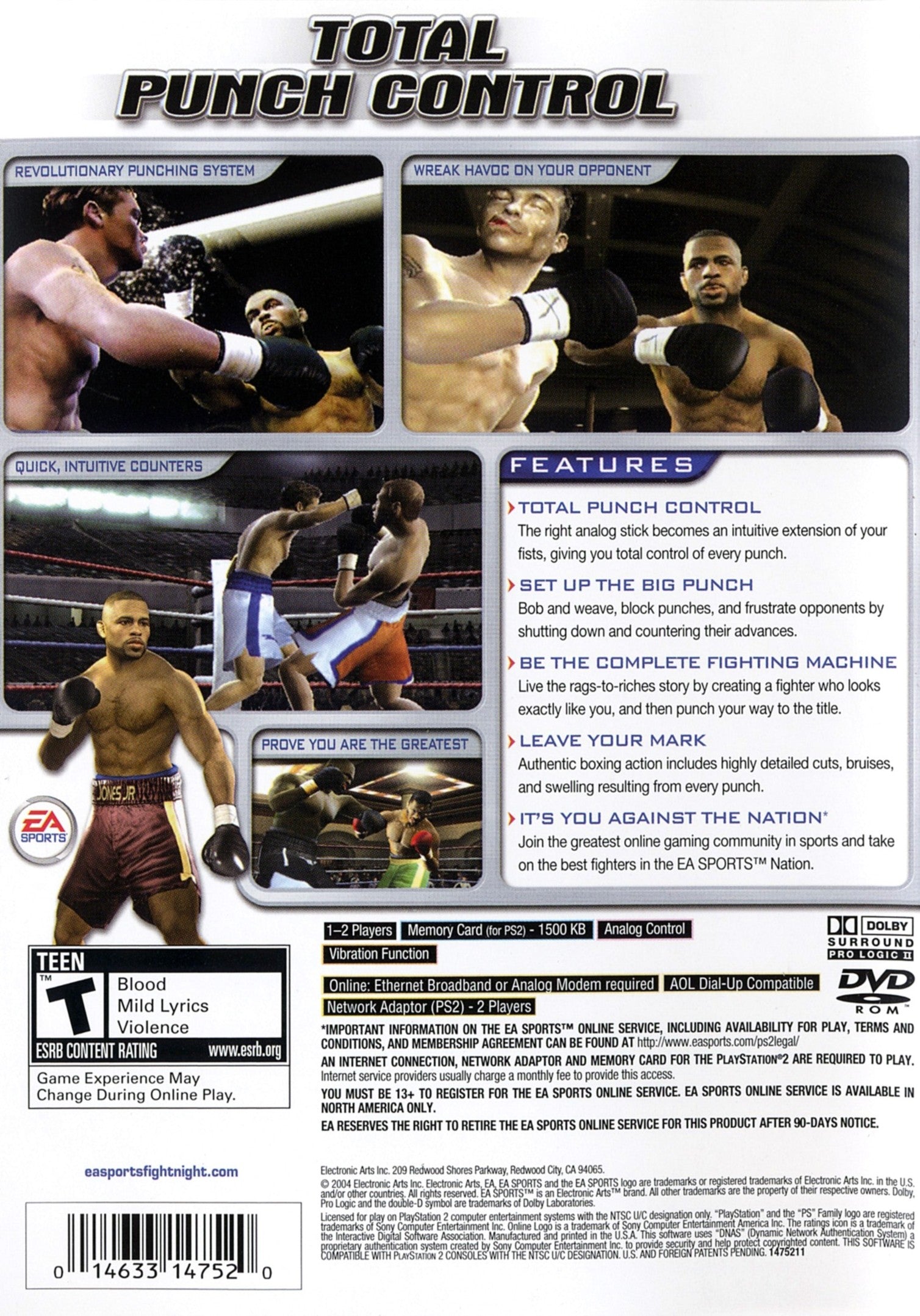 Step into the ring and experience the sweet science with Fight Night 2004 for the Playstation 2. This boxing simulation introduces the innovative "Total Punch Control" system, allowing for unprecedented analog stick precision in throwing jabs, hooks, and uppercuts. Create your own boxer, train them to greatness, and fight your way up the ranks against a roster of legendary champions. Feel every devastating blow in this immersive boxing experience.