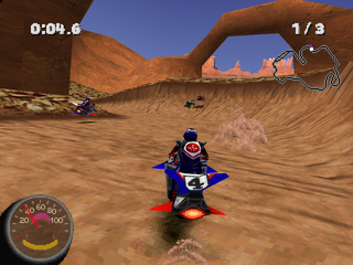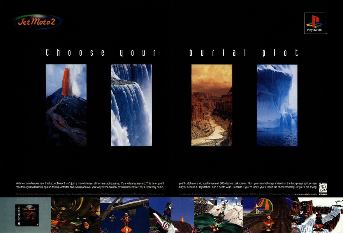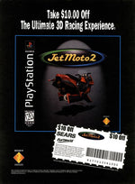 The futuristic hoverbike racing continues with Jet Moto 2 for the Playstation. This sequel delivers even more speed, crazier tracks, and more aggressive opponents. Pilot powerful jet bikes across land and water, mastering challenging new courses filled with extreme jumps and hazardous obstacles. Utilize the magnetic grapple, perform daring stunts, and battle for first place in this adrenaline-fueled arcade racer.