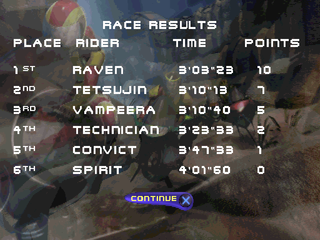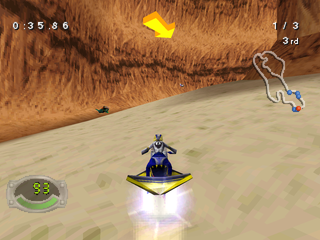 Corre contra el reloj y recorre pistas desafiantes en 'Jet Moto 3' para Playstation. Elige tu hoverbike, domina el terreno y experimenta la emoción de alta velocidad de este clásico juego de carreras.