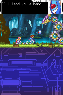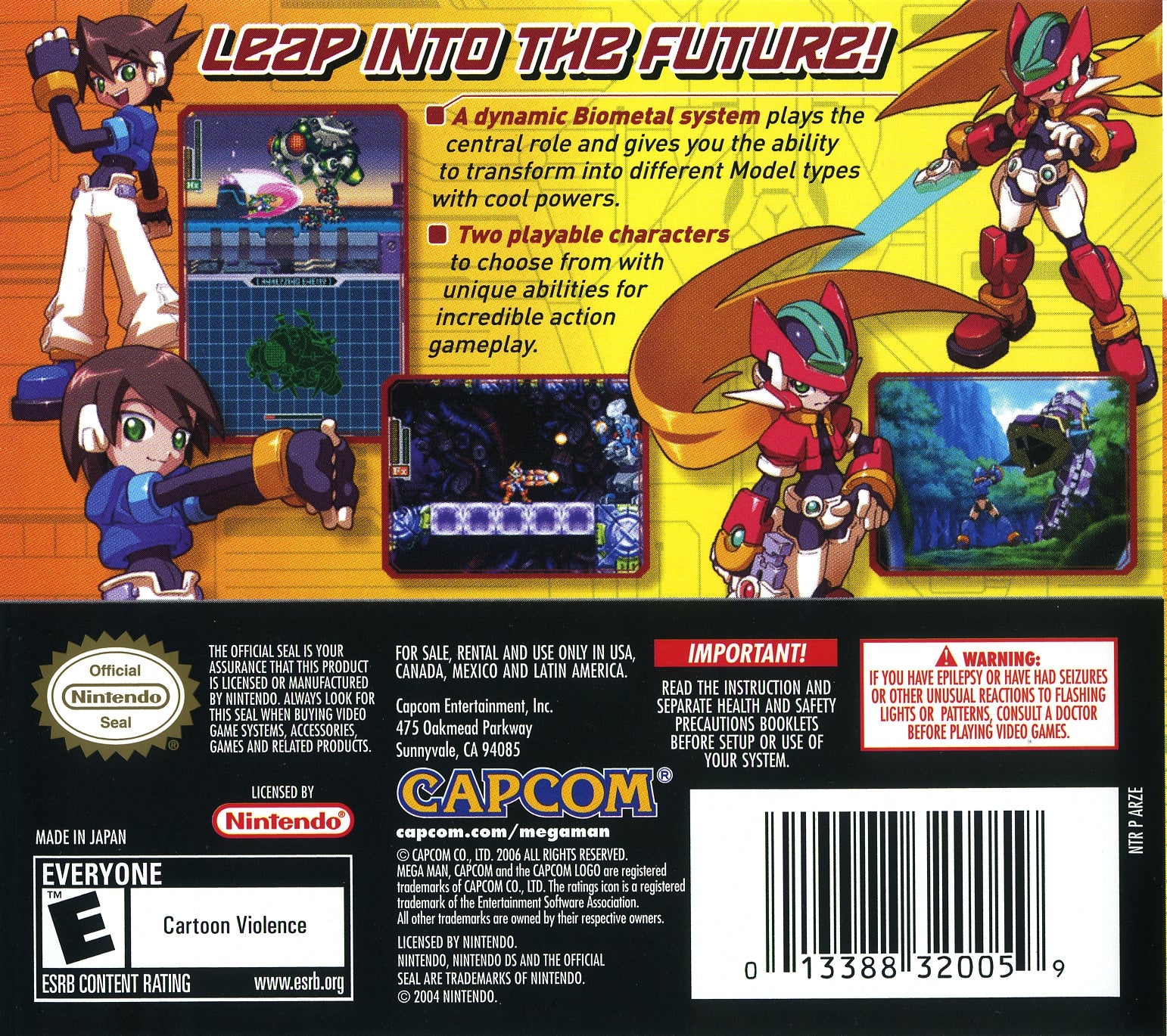 The adventure continues after the Mega Man Zero series in Mega Man ZX for the Nintendo DS. Choose to play as Vent or Aile, who discover Biometals—living artifacts containing the souls of legendary Reploids like Mega Man X and Zero. Merge with these Biometals to gain incredible powers and transform into various forms as you battle Mavericks and uncover a new threat. This action-platformer features an interconnected world and deep combat.