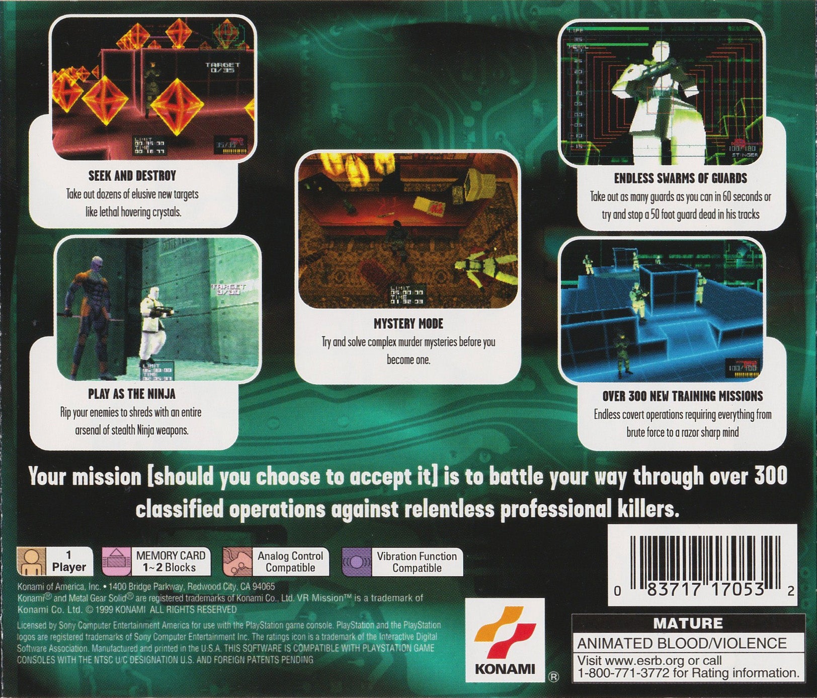 Test your stealth skills to their absolute limit in Metal Gear Solid VR Missions for the PlayStation. This standalone expansion is the ultimate training ground for any aspiring secret agent, offering over 300 challenging virtual reality scenarios. Hone your abilities in a variety of missions focused on sneaking, weapon proficiency, and advanced combat techniques. Solve unconventional puzzles, race against the clock, and even play as the mysterious Cyborg Ninja. If you've mastered the main story, this is your chance to prove you have what it takes to be a legendary operative.