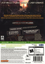 The year is 2034. Beneath the ruins of post-apocalyptic Moscow, in the tunnels of the Metro, the remnants of mankind are besieged by deadly threats from outside – and within. In Metro: Last Light for the Xbox 360, play as Artyom, burdened by guilt but driven by hope, as you fight for survival against mutants and human factions. This atmospheric first-person shooter features intense combat, stealth mechanics, and a gripping story.