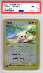 La tarjeta 'Minun [Reverse Holo] #7 - Pokémon Dragón' que se muestra en la foto puede no ser la tarjeta exacta que recibirás. Presta atención al grado que pides. Todas las ventas de tarjetas calificadas son definitivas.
