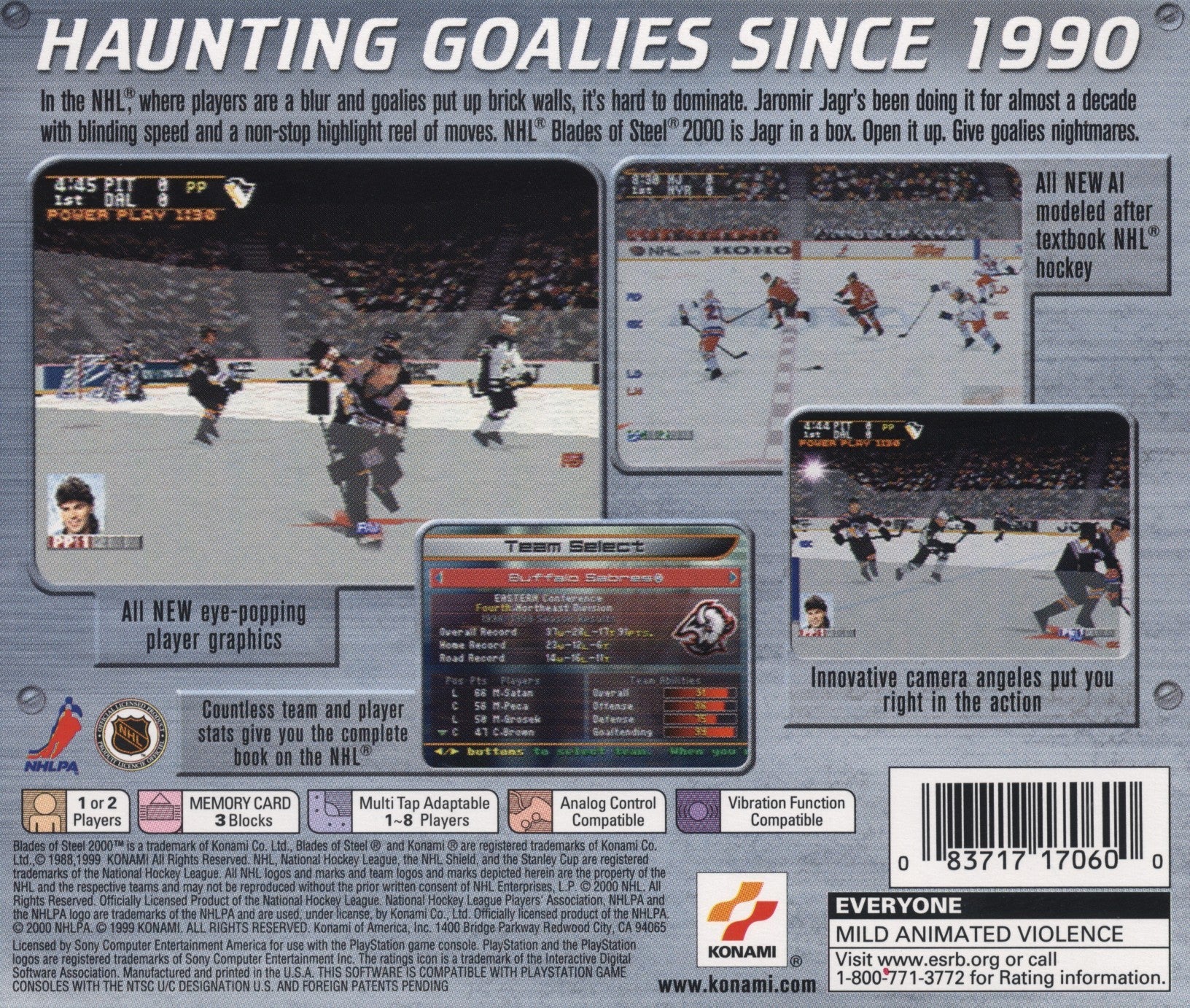 Relive arcade hockey excitement with NHL Blades of Steel 2000 for the Playstation. This revival of the classic Konami series delivers fast-paced, action-oriented gameplay with hard checks, quick shots, and the signature fighting mechanics. Take control of your favorite NHL teams and experience a more arcade-style approach to hockey, perfect for fans seeking thrilling, accessible fun.