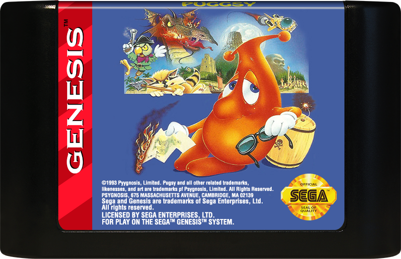 Use your brain and your unique abilities to solve a world of puzzles in Puggsy for the Sega Genesis. In this charming and inventive puzzle-platformer, you control an orange alien who finds himself stranded on a strange planet. Puggsy's key ability is to pick up, drop, carry, and stack a huge variety of objects, using them to overcome obstacles and defeat enemies. The game's innovative physics engine allows for creative and often surprising solutions to its many challenges. With its colorful graphics and cleverly designed levels, Puggsy is a rewarding adventure that will test your problem-solving skills at every turn.