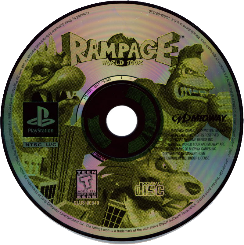 Unleash monstrous mayhem and destroy everything in your path in Rampage World Tour for the PlayStation. Choose to play as George the giant ape, Lizzie the lizard, or Ralph the wolf, and embark on a global tour of destruction. This classic arcade game is all about chaotic fun as you climb skyscrapers, smash buildings to rubble, and fight off military forces. Eat food to replenish your health and team up with a friend for co-operative city-trashing action. It's a simple, satisfying, and wildly entertaining experience that lets you indulge your inner monster.
