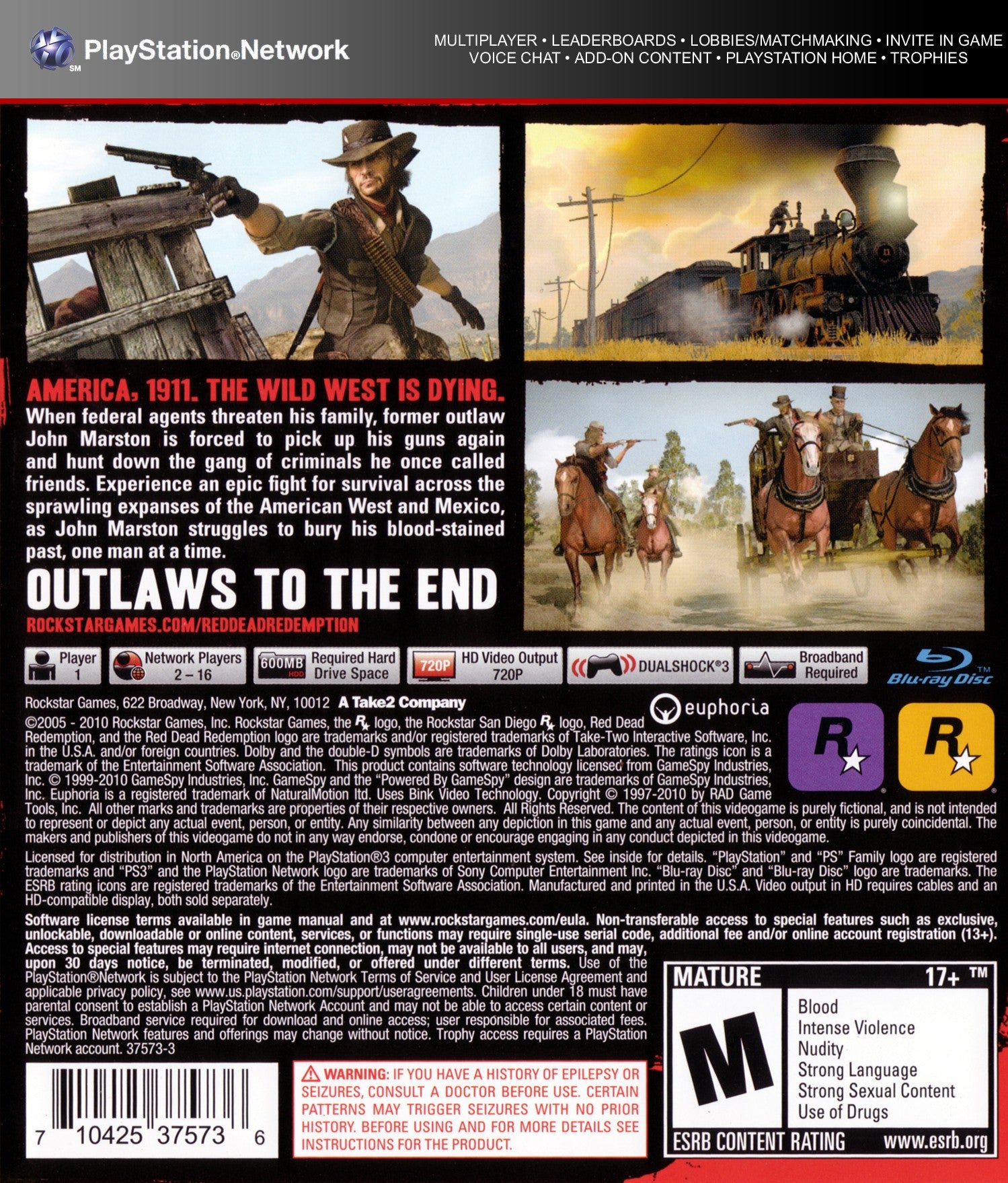 Step into the boots of former outlaw John Marston in the critically acclaimed Red Dead Redemption for the Playstation 3. Set in the dying years of the American Wild West, Marston is forced by federal agents to hunt down his former gang members. Explore a vast and stunning open world teeming with wildlife, dynamic events, and engaging characters. Experience intense shootouts, a deeply compelling narrative of honor and betrayal, and make choices that shape your destiny in this epic Western adventure from the creators of Grand Theft Auto.