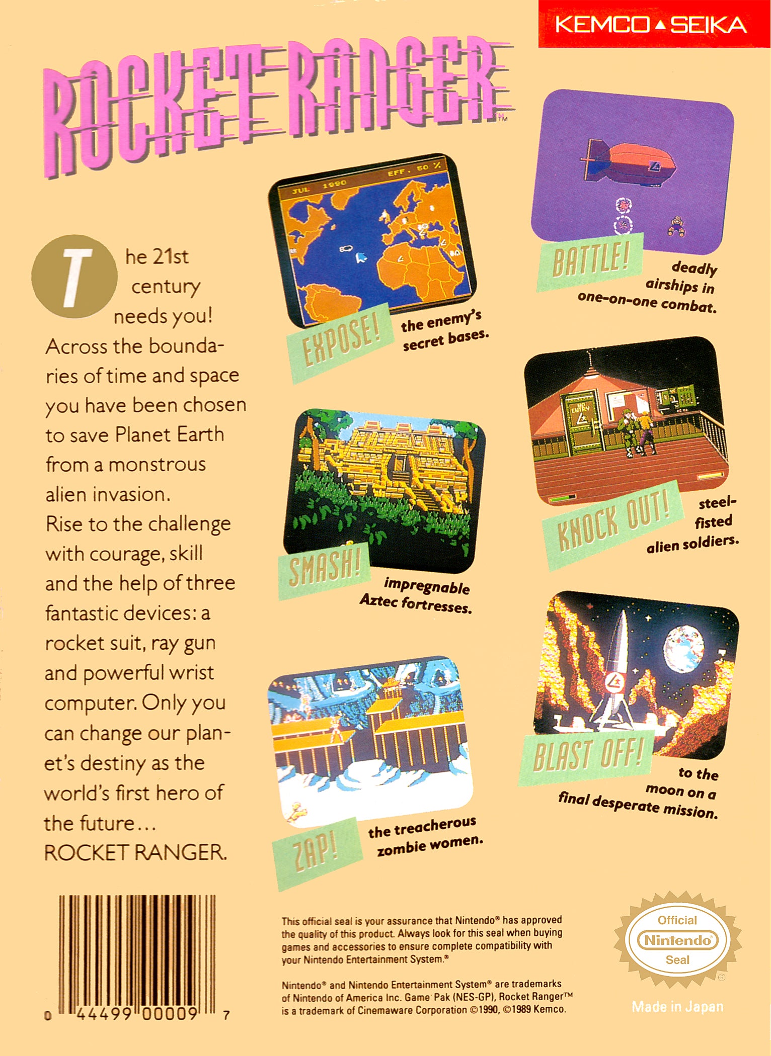 Strap on your rocket pack and save the world in Rocket Ranger for the NES. This cinematic action-adventure game, inspired by 1950s sci-fi serials, puts you in the role of a daring Rocket Ranger battling a Nazi-like alien force. Manage resources, decipher codes, fly your rocket pack in thrilling action sequences, and engage in strategic turn-based combat on a world map. With its ambitious scope, unique blend of gameplay styles, and distinctive retro-futuristic aesthetic, Rocket Ranger offered a complex and memorable experience for NES players seeking a grand adventure.