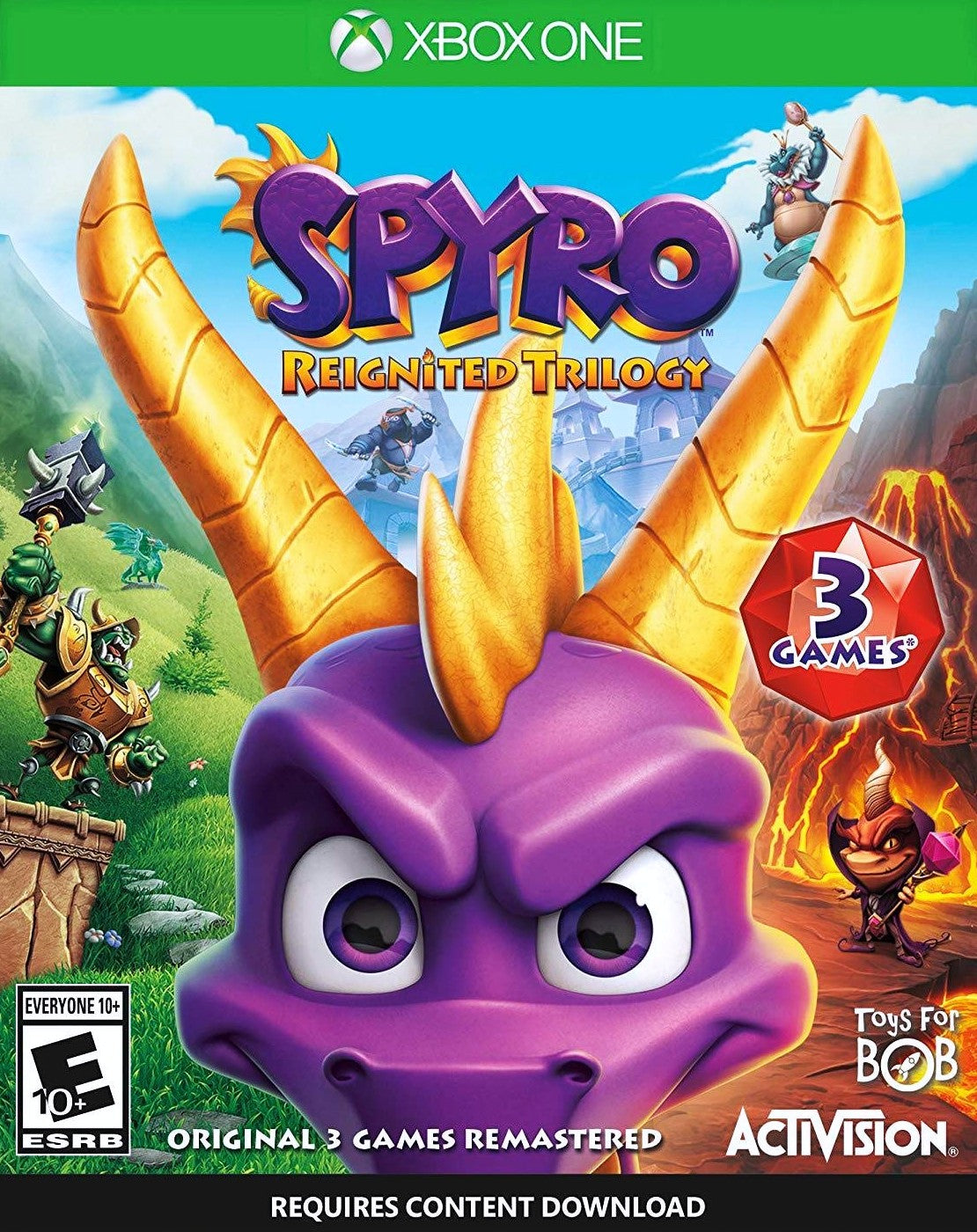 The original master of flame is back and looking better than ever in the Spyro Reignited Trilogy for the Xbox One. This massive collection includes three legendary 3D platformers, completely remade from the ground up: Spyro the Dragon, Spyro 2: Ripto's Rage!, and Spyro: Year of the Dragon. Explore sprawling, whimsical worlds, charge through enemies, and glide to new heights as the sassy purple dragon, Spyro. With over 100 stunningly remastered levels to explore, countless collectibles to find, and iconic characters to meet, this is the definitive way to experience a classic. Get ready to set fire to your nostalgia.