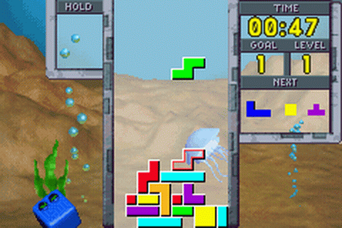 Discover diverse ways to play a puzzle classic with Tetris Worlds, a Japanese import for the GameBoy Advance. This title offers multiple variations on the iconic Tetris gameplay, each set on a different "world" with unique rules and objectives. Go beyond standard Marathon mode and engage in modes like Sticky, Fusion, and Hot-Line Tetris, each requiring new strategies to succeed. With its rich selection of gameplay variations and the timeless appeal of line-clearing action, this Japanese GBA version provides a deep and replayable puzzle experience for fans.