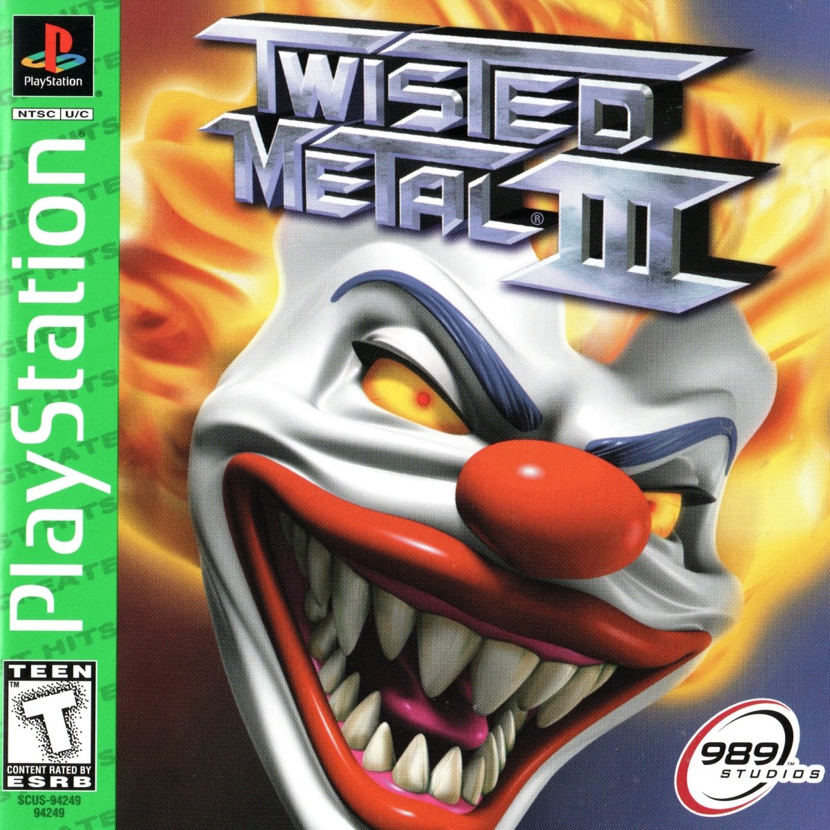 Experience vehicular carnage in 'Twisted Metal 3' [Greatest Hits] on the Playstation. Choose your favorite destructive vehicle and engage in intense battles across diverse arenas in this classic car combat game.