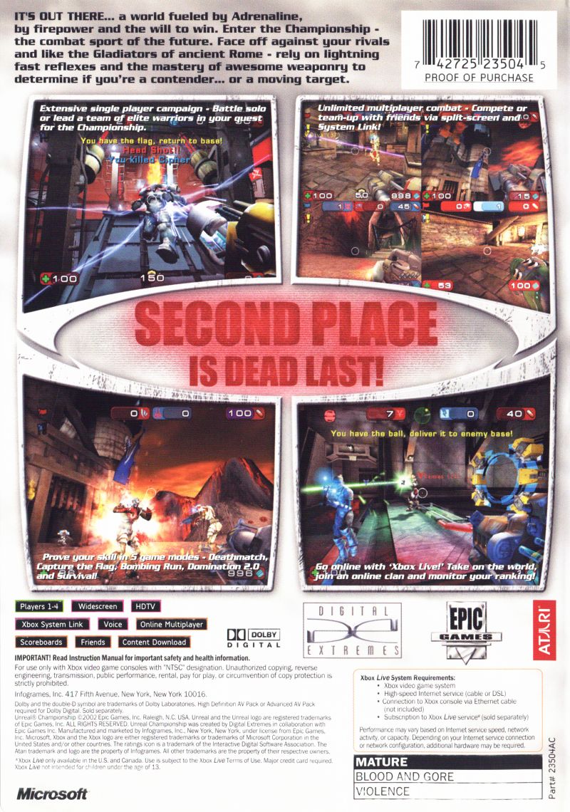 Entra en el trepidante mundo del combate futurista con 'Unreal Championship' en Xbox. Participa en intensas batallas multijugador, utiliza armas poderosas y demuestra tus habilidades en este juego de disparos en primera persona ambientado en el universo Unreal.