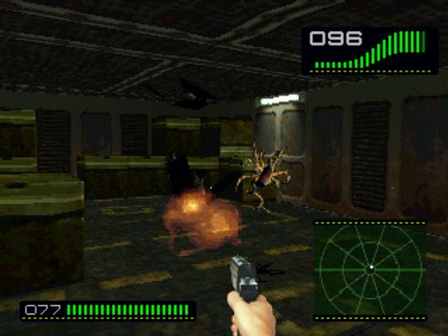 Experience a terrifying blend of action and horror with Alien Trilogy for the Playstation. This first-person shooter immerses you in the claustrophobic corridors and desolate landscapes inspired by the first three Alien films. As Lt. Ellen Ripley, you'll battle hordes of relentless Xenomorphs, Facehuggers, and powerful Alien Queens using an arsenal of iconic weaponry. Prepare for a pulse-pounding fight for survival against the galaxy's most perfect organism.