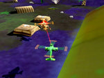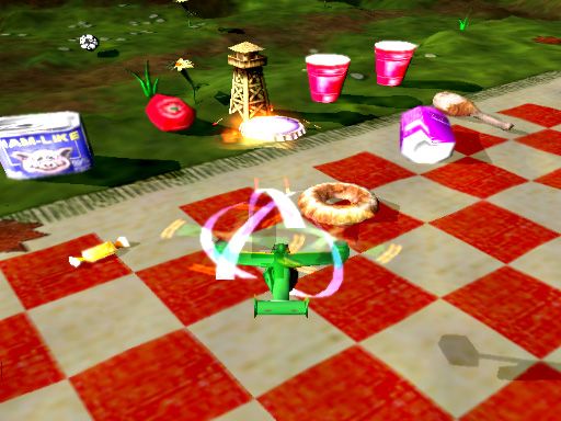 Take to the skies and rain down plastic destruction from above! Army Men Air Attack 2 for the Playstation is a high-flying helicopter action game that puts you in the cockpit of the Green Army's best choppers. Choose from a variety of helicopters, each with unique weapons and handling, and pilot them through backyard battlefields and picnic tables. Use your winch to pick up objects—and even enemies—to solve puzzles or drop heavy payloads on Tan forces. With its focus on arcade-style aerial combat and a fun co-op mode, this sequel delivers explosive action for aspiring aces.