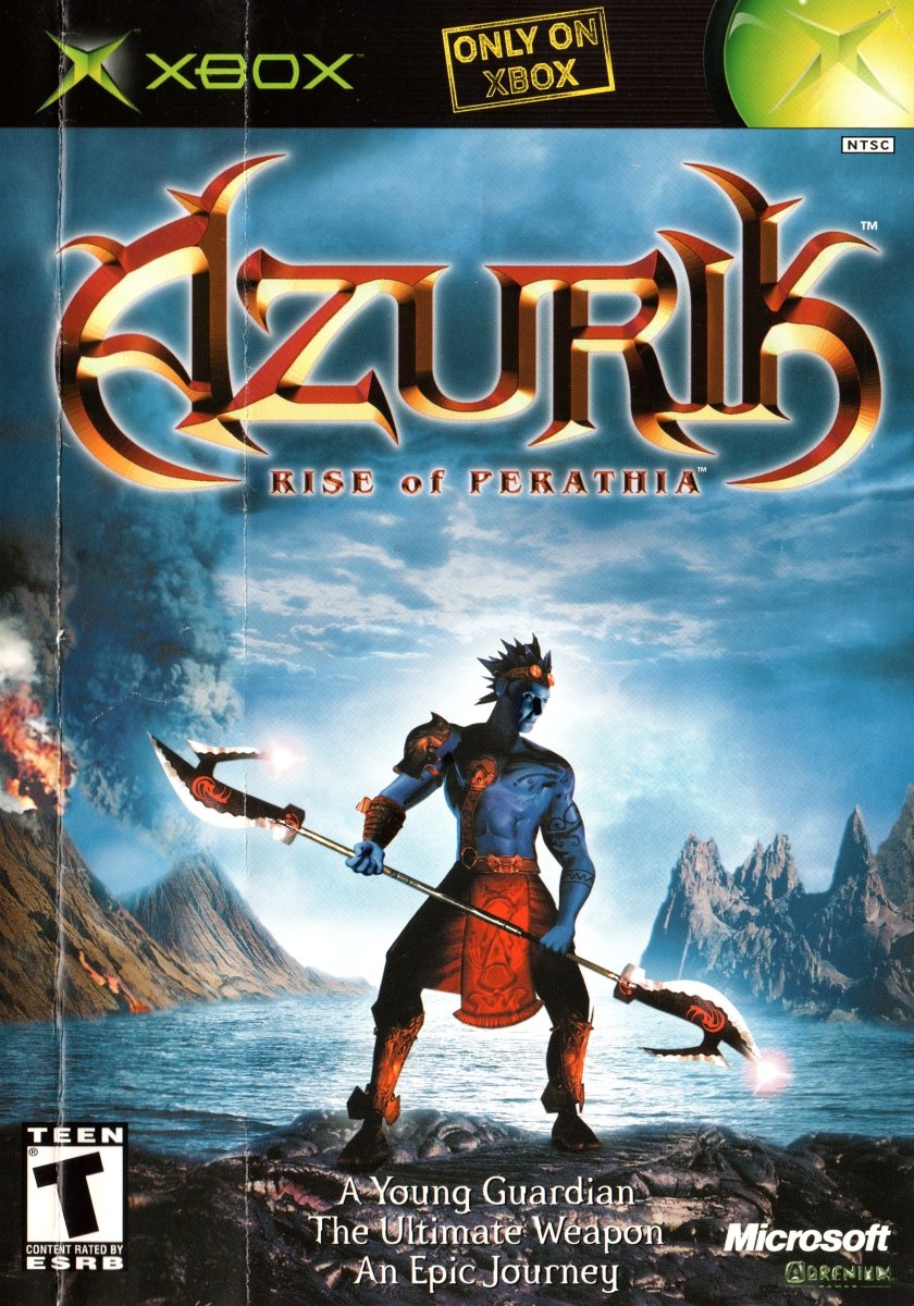 Soar through the skies of a vibrant alien world in Azurik: Rise of Perathia for the Xbox. As the young apprentice Azurik, you must master the powers of the elements—fire, water, earth, and air—to save your world from an encroaching darkness. Explore a vast and beautiful landscape, solve environmental puzzles, and engage in third-person combat using your elemental staff. It's a grand and ambitious action-adventure from the early days of the Xbox.