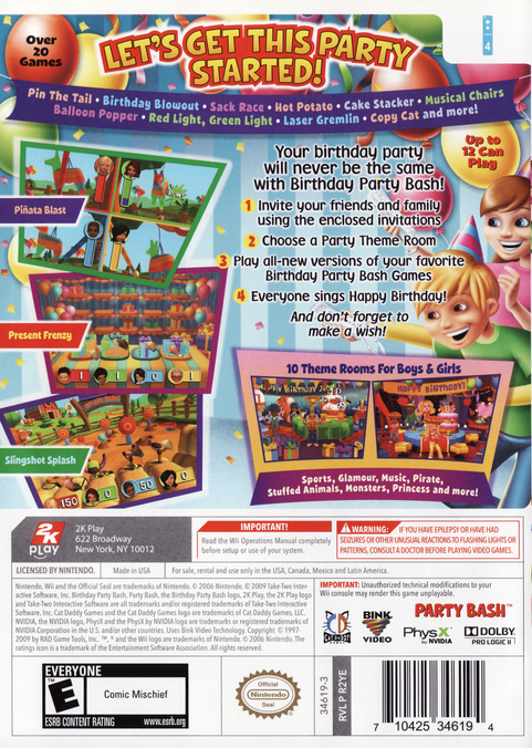 Get ready to celebrate with Birthday Party Bash for the Wii. This family-friendly party game is packed with fun mini-games inspired by classic birthday party activities. Compete in up to 20 different games, from hitting a piñata to playing musical chairs. With its charming presentation and accessible, motion-controlled gameplay, it's the perfect way to bring the fun of a birthday party into your living room any day of the year.