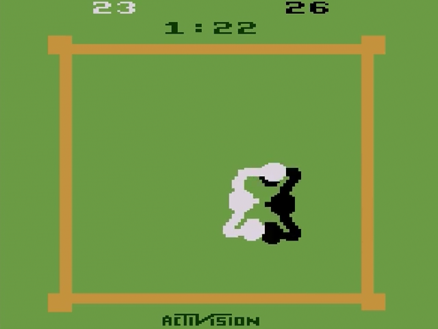 Step into the ring with Boxing for the Atari 2600. This classic sports title offers a simple yet satisfying take on the sweet science. As two blocky boxers, you'll go head-to-head in a one-on-one bout. Move around the ring, throw punches, and try to score a knockout. It's a fun and competitive piece of gaming history and one of the earliest examples of a versus fighting game.