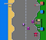 Race, bump, and jump your way to the finish line in Bump 'n' Jump for the NES. This classic top-down driving game challenges you to navigate through a series of increasingly difficult seasonal tracks. Bump rival cars into obstacles, and hit your jump button to soar over gaps and other cars. It's a fun and frantic arcade-style racer that will test your reflexes.