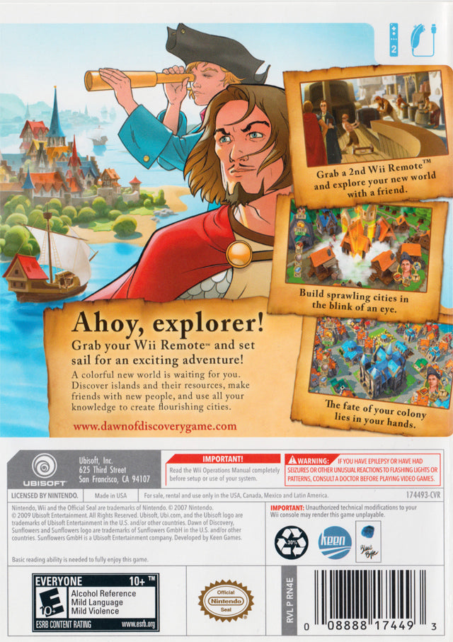 Explore and build a thriving civilization in Dawn of Discovery for the Wii. This engaging strategy and simulation game tasks you with settling a new world. Gather resources, build cities, manage your population's needs, and establish trade routes. Discover new islands, encounter other cultures, and strive to create a prosperous and happy kingdom. It's a deep and rewarding experience for aspiring strategists and city-builders.