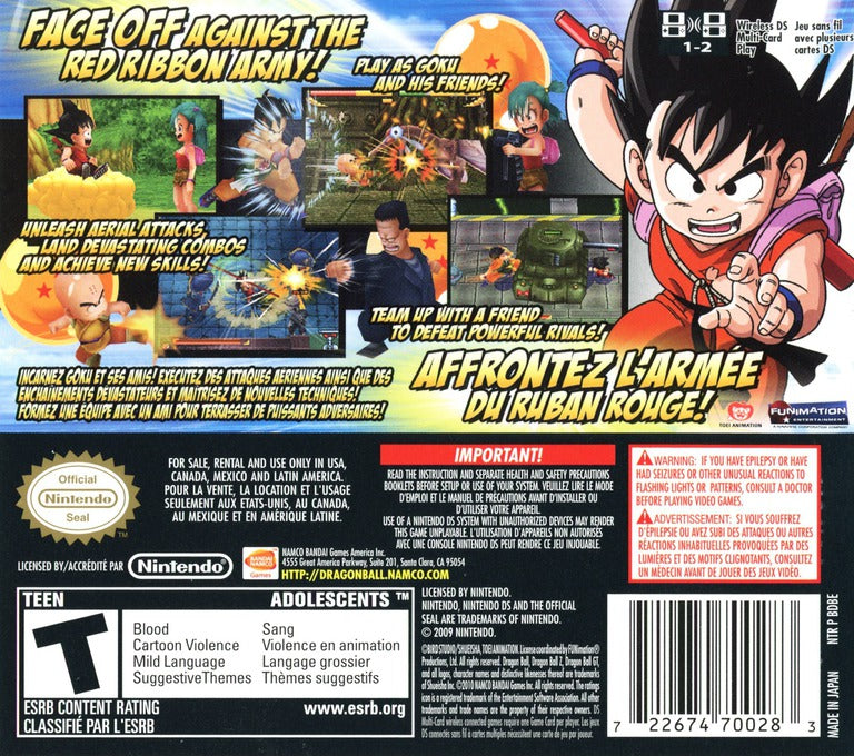 Continue young Goku's quest for the Dragon Balls in Dragon Ball: Origins 2 for the Nintendo DS. This action RPG picks up where the original left off, following Goku and his friends as they battle the Red Ribbon Army. Utilize the DS touch screen for combat and puzzle-solving, and experience a charming and faithful retelling of the classic Dragon Ball story.
