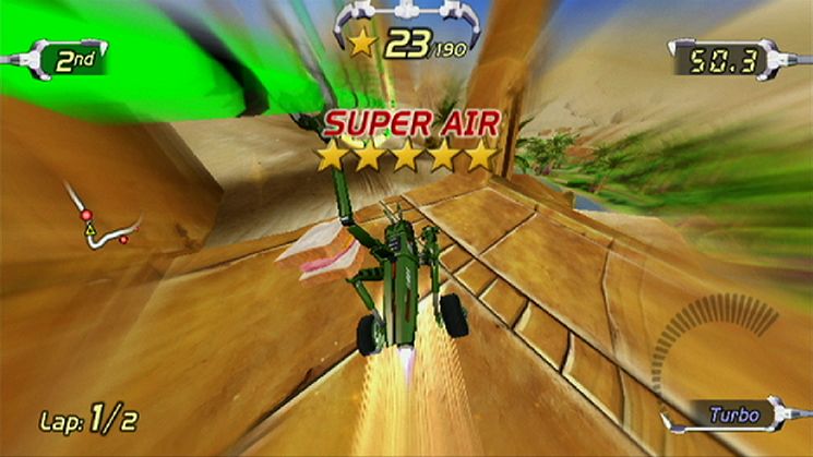Prepare for an over-the-top, animal-themed racing spectacle in Excitebots: Trick Racing for the Wii. Pilot bizarre robotic animal vehicles – from frog-bots to bat-bots – through wild, interactive courses. Perform outrageous stunts, play mini-games mid-race like poker and pie-throwing, and strategically use items to outmaneuver your opponents. With its chaotic, anything-goes gameplay and intuitive motion controls, Excitebots delivers a uniquely exhilarating and hilarious racing experience.