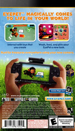 Adopt and nurture your very own virtual pet with EyePet for the PSP. Using the PSP camera and a magic card, watch as a cute, furry creature comes to life in your real-world environment. Play with your EyePet using various toys, teach it tricks, customize its appearance, and even help it create drawings. This augmented reality pet simulation offers a charming and interactive experience as you care for and bond with your unique digital companion.
