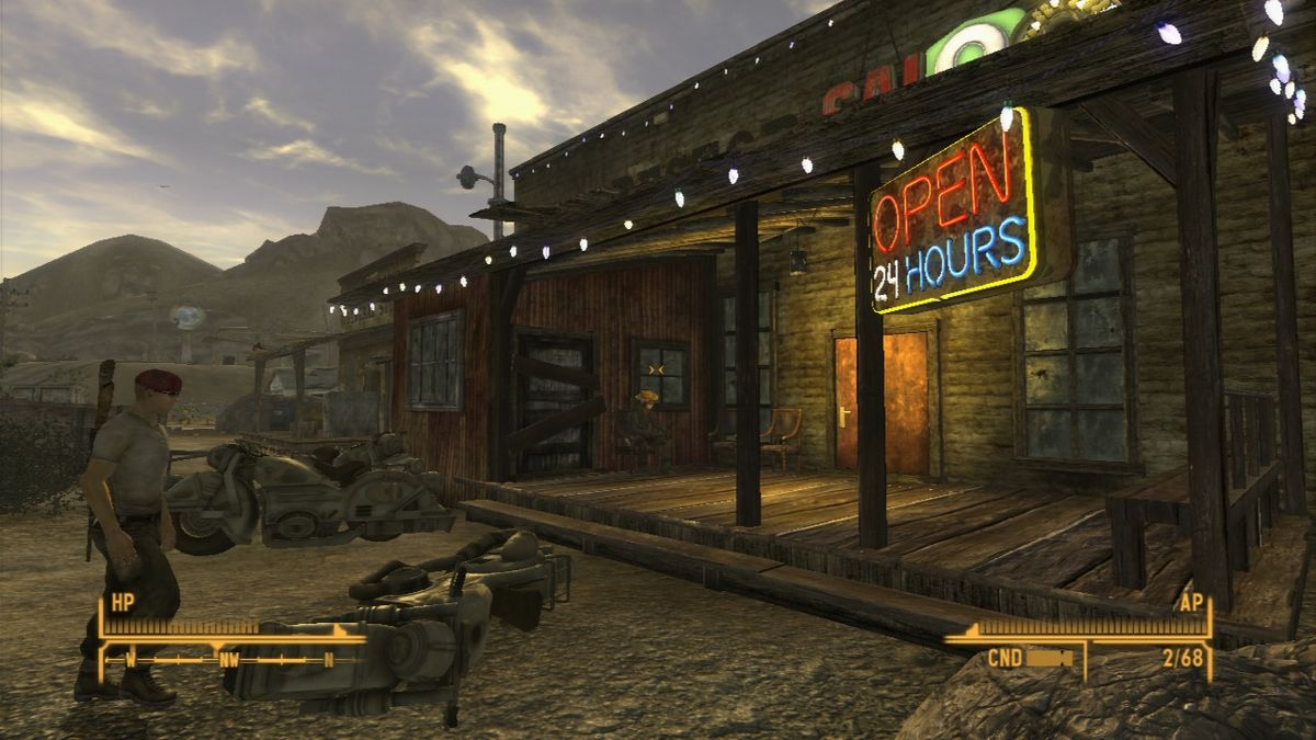 Venture into the treacherous Mojave Wasteland in Fallout: New Vegas for the Xbox 360. As a courier left for dead, you'll become entangled in a power struggle between warring factions vying for control of the glittering oasis of New Vegas. This critically acclaimed open-world RPG features a branching narrative with significant player choice, a deep reputation system, and challenging survival elements. Who will you side with in this sun-scorched land of opportunity and danger?