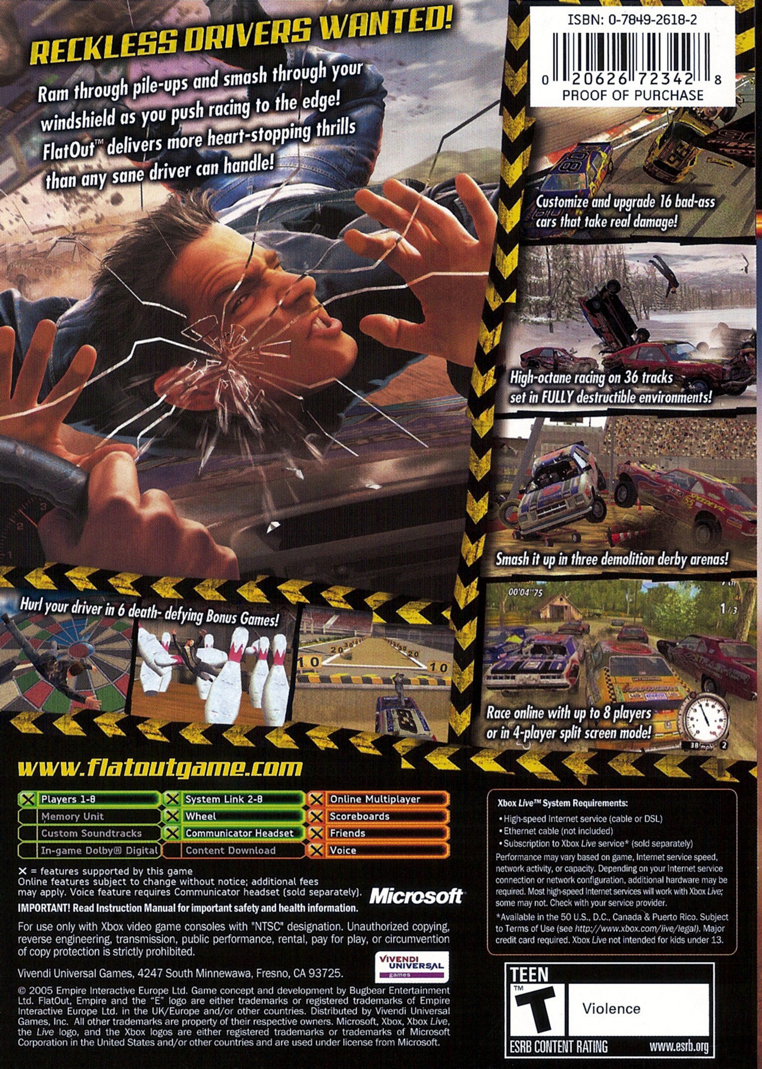 Embrace pure, unadulterated destruction in the high-octane racing game Flatout for the Xbox. This is no ordinary racer; it's a full-contact demolition derby where crashing is not only encouraged, it's part of the strategy. Smash through fences, tire walls, and your opponents as you battle for first place on chaotic, debris-filled tracks. The game's revolutionary physics engine creates some of the most spectacular crashes in gaming history. When you're tired of racing, launch your driver through the windshield in a series of bizarre and hilarious ragdoll mini-games. This is vehicular mayhem at its finest.