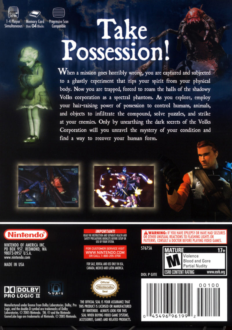 Unleash your spectral powers and possess your way to the truth in Geist for the Gamecube. After being separated from your physical body, you must navigate a mysterious research facility as a ghostly operative. Take control of humans, animals, and even inanimate objects to solve intricate puzzles, combat hostile forces, and uncover a dark conspiracy. This unique first-person adventure offers a thrilling blend of action, stealth, and supernatural abilities. Prepare for an out-of-body experience!